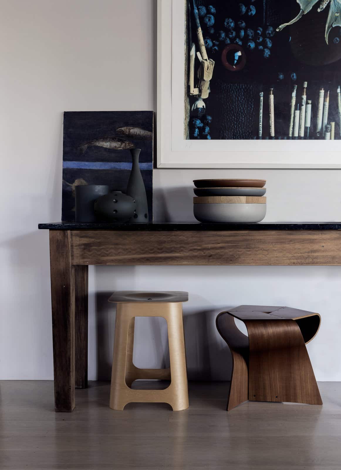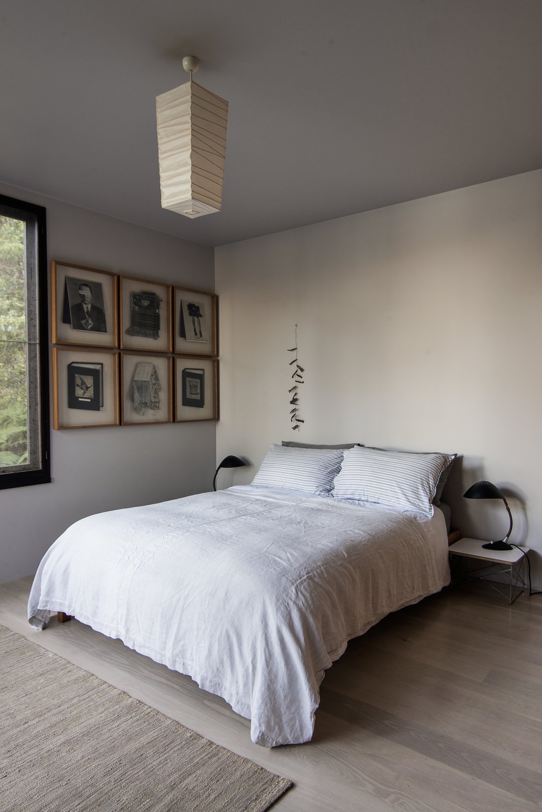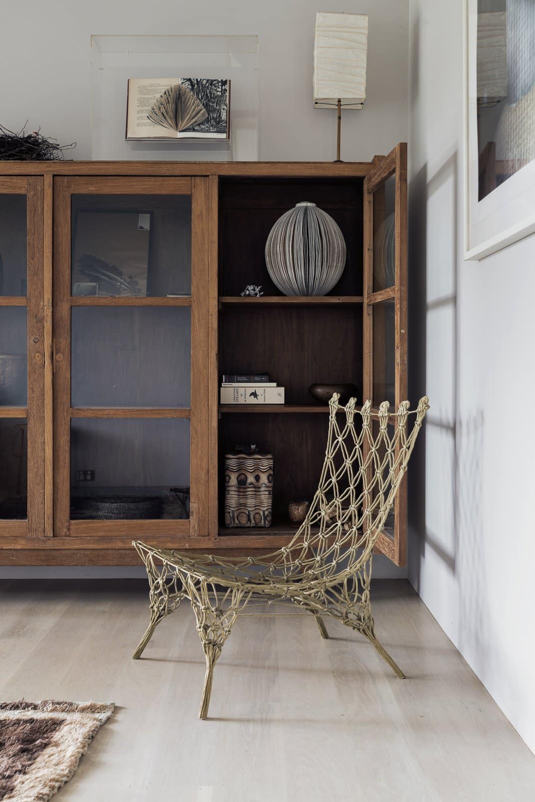 The home’s open living space is dotted with iconic design classics including wishbone dining chairs, Noguchi lamps, Carl Hansen safari chairs and Serge Mouille wall lights. The clean lines and lack of clutter draw your eye to each one of them, their lines, curves and natural materials melding seamlessly with the surroundings.