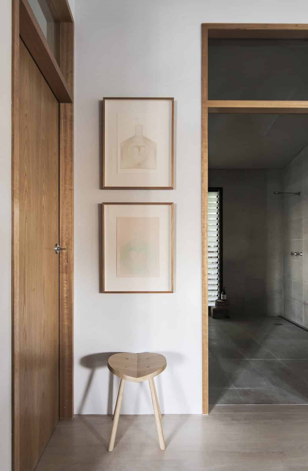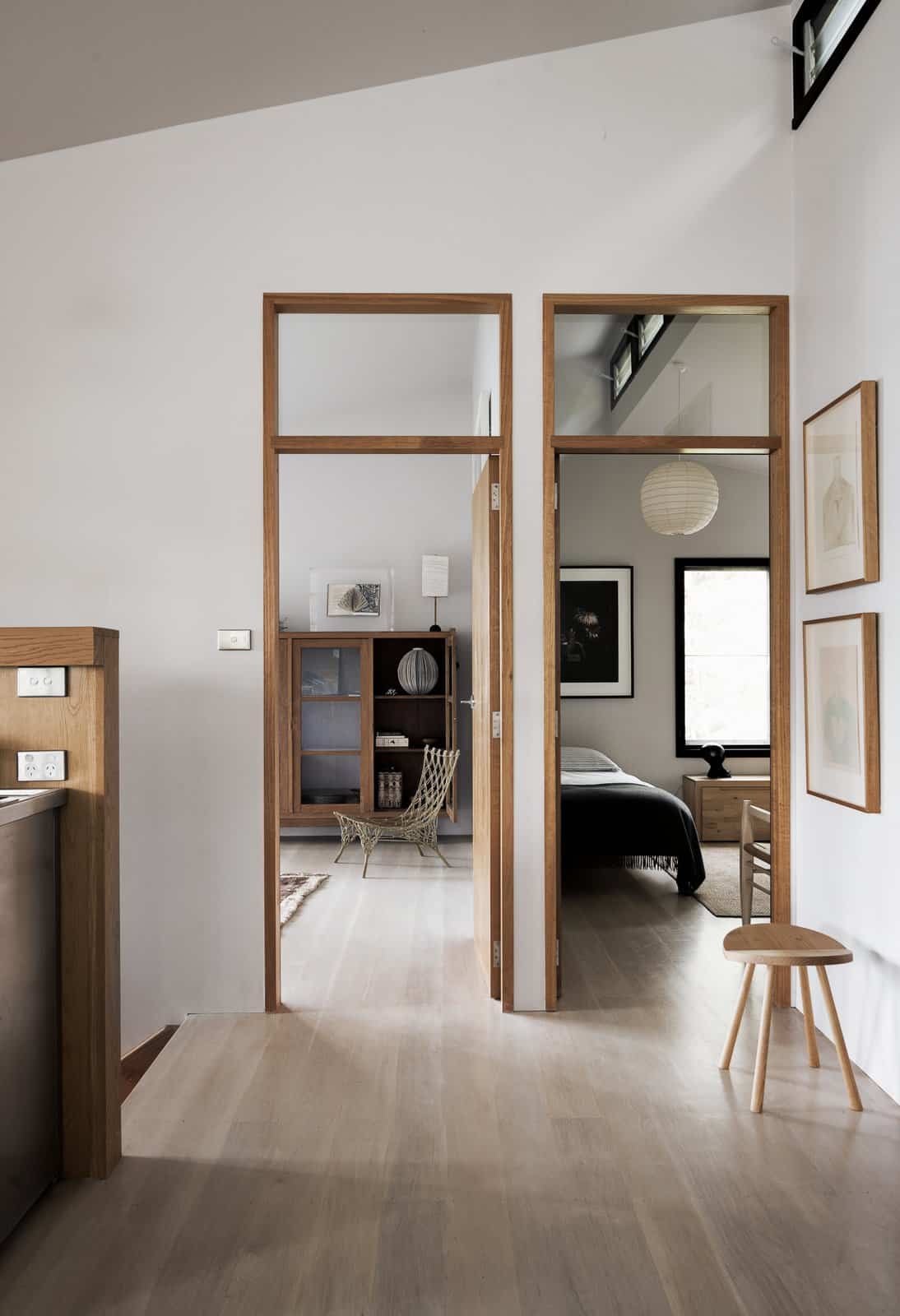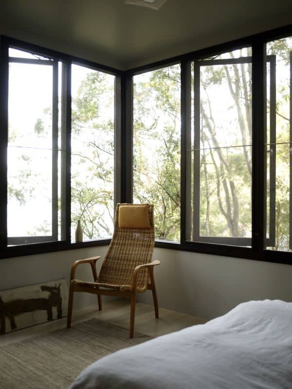 Originally owned and designed by renowned design expert Karen McCartney (author of one of my favorite design tomes – The Alchemy of Things), this gem of a vacation house is perched among the trees on a small island about an hour north of Sydney. This three-bedroom, two-bathroom home is a study in simplicity. But the absence of bells and whistles is not a detraction. Instead, the pared-back design, clean lines and minimal decorative architectural details make every intentional decorating choice stand out. The local woods used to frame doorways. The bleached American oak floors. The strong black accents. Each choice stands on its own but also plays beautifully with everything around it.